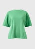 Add a pop of colour to your new season wardrobe with this vibrant green top. Crafted from 100% cotton, this top features subtle seam detailing that adds structure and visual interest while maintaining a clean, modern silhouette. Drop shoulder short sleeves and a crew neckline complete the design.
