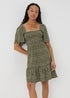 Learn moreCharm meets comfort in our Green Shirred Bodice Mini Dress. Delicate shirring ensures a flattering fit, while puff sleeves with tie-up details add whimsy. The subtle floral pattern and tiered mini skirt create playful movement. Crafted from lightweight fabric, it’s perfect for sunny days or casual evenings. Dress it up with heels or down with flats for versatile style.