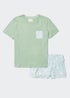 Learn moreCrafted from 100% cotton to keep you cool and comfy on warm summer evenings, this classic PJ pair will become your trusty go-to. Cut with short sleeves, the pyjama top is styled in green and features a crew neckline with a palm printed single chest pocket. Matching palm printed shorts with an elasticated waistband provide added stretch. Model Height: 5ft 9.