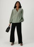 This green textured blouse is the perfect addition to any wardrobe. Simple yet sophisticated, it can be dressed up or down for any occasion. Crafted from breathable fabric, this blouse is soft and comfortable to wear. It features a relaxed fit, with a V neckline and long sleeves. The textured fabric and elasticated cuffs add a touch of style to this blouse while the versatile design makes it suitable for both casual and formal settings. Pair it with your favourite jeans and heels for a night out or dress it down with leggings and trainers for a casual day look.