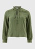 Refresh your wardrobe with this beautifully textured green blouse that brings effortless polish to everyday styling. The high neckline with tie detailing adds a touch of sophistication, while the subtle texture offers depth and interest without overpowering your look. Its cuffed long sleeves and delicate button placket provides added elegance, making it easy to wear for work, weekends or evenings out. Style it with tailored trousers for a refined finish or pair with denim for a chic, laid-back ensemble.