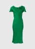 Elevate your wardrobe with the luxurious Green Tie Back Satin Dress, a stunning piece that exudes elegance and sophistication. This dress features a lustrous satin fabric in a vibrant shade of green that is sure to turn heads. The design includes short sleeves and a modest neckline, making it suitable for various occasions. The silhouette is form-fitting, highlighting the body’s natural curves while maintaining comfort and style. The key feature of this dress is the tie-back detail, adding an element of surprise and charm to the back view. Perfect for evening events or special occasions, this dress pairs beautifully with heels and minimal accessories for a complete look.