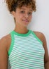 Learn moreStep into the spotlight with the vibrant Green & White Stripe High Neck Ribbed Vest. Designed with a high neckline and a sleeveless silhouette, this ribbed vest offers both comfort and style. The alternating green and white stripes create a fresh and lively look, perfect for casual wear. Pair it with light blue denim jeans for a relaxed yet fashionable outfit. A must-have addition to your everyday wardrobe!
