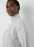 A winter wardrobe essential, this jumper will keep you cosy and stylish all season long. Crafted from a soft and luxurious knitted fabric, this jumper features a classic and cosy high neck and a striking cable knit pattern. Its grey marl colour is easy to pair, making it a versatile addition to your collection.