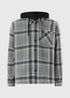 Upgrade your casual wardrobe with the Grey Check Textured Hooded Shacket. Featuring a classic grey check pattern and a soft textured fabric, this shacket combines the structure of a shirt with the warmth of a jacket, making it perfect for layering in cooler weather.