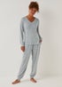Cosy up on chilly evenings in this snug lounge top. Crafted with a sumptuously soft viscose blend, the grey top is cut with long cuffed sleeves and a v-neck. Pair with the matching co-ord lounge bottoms (S2919823_C229) to complete the laidback look. Model Height: 5ft 9.