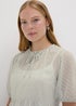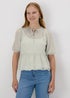Learn moreElevate your style with our Grey Dobby Sheer Blouse, a perfect blend of elegance and modernity. Designed for the fashion-forward woman, this blouse features a delicate dobby pattern, adding texture and sophistication to your ensemble. Made from high-quality, lightweight fabric, in a grey hue that offers a sheer, ethereal look while ensuring breathability and comfort. Featuring a flattering tie v-neckline that elongates the neck, elasticated puff sleeves and a smock detailing. Tuck into high-waisted trousers and add heels for a sophisticated office look or pair with skinny jeans and ankle boots for a chic, casual outfit.