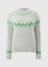 Wrap yourself in comfort this season with our Grey Fairisle Fluffy Jumper, designed to keep you warm and stylish on chilly days. Crafted from an ultra-soft, fluffy knit, this jumper features a timeless Fairisle pattern in soft neutral tones that make it effortlessly wearable with any outfit.