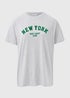 Stay effortlessly stylish and cool with our grey oversized NEW YORK t-shirt, a wardrobe staple that exudes casual sophistication. Crafted from the softest cotton rich material, this t-shirt offers a relaxed, oversized fit that drapes beautifully on any body type. The added green NEW YORK print on the front adds a touch of style to this basic t-shirt, making it an essential for your everyday wardrobe. Pair it with skinny jeans, ankle boots, and a leather jacket for a chic, urban look or dress it down with jogging bottoms, trainers, and a baseball cap for a comfortable, athleisure ensemble.
