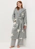 Wrap yourself in warmth and comfort with our Lambi Fleece Star Dressing Gown in grey. Crafted from ultra-soft lambi fleece, this dressing gown is designed to keep you warm and cosy during those chilly mornings or relaxing evenings at home. Featuring two front pockets, a hood and a tie waist belt.