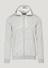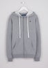 Keep things relaxed with this grey hoodie, featuring a zip-up design. Perfect for layering, the hoodie is detailed with a white draw cord hood and two side pockets to combine style and practicality. Model Height: 6ft 2 1/2.