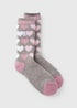 Keep your feet warm and cosy with the Heat Holders thermal grey heart socks. These socks are thermal to keep the heat in, ensuring a warm and cosy wear for the colder months with a 1.6 tog. With a grey base colour and pink heart pattern all over, these socks keep your feet looking stylish while staying warm for everyday wear.