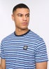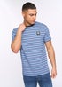 Introducing the Henfeed T-Shirt, a soft and stylish striped t-shirt made from 100% cotton. It features a comfortable crew neck and a small rubber badge on the chest for a modern touch. Perfect for everyday wear, pair it with jeans for a relaxed look.
