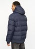 The Thinker Puffer Bomber Jacket is built for warmth and function, featuring bold detailing and a streetwear-inspired finish. Padded puffer bomber silhouette, full zip fastening with snap button placket, protective hood with contrast lining, ribbed cuffs and hem for comfort, Henleys Studio branding on chest. Fabric: 100% Polyester.