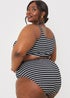 Dare to be different in our Black Crinkle Stripe Bikini Top. With its unique stripe design and flattering silhouette, you are guaranteed to stand out this summer. Designed for the stylish and confident beach-goer, this bikini top will have you feeling your utmost best while soaking up the sun.