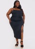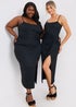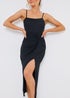 The In The Style Jac Jossa Black Ribbed Ruched Midi Dress is a chic and versatile piece that can be dressed up or down for any occasion. Crafted from a premium ribbed fabric, this midi dress hugs your curves in all the right places, offering a flattering and comfortable fit. The classic black hue enhances its timeless appeal, making it a versatile piece for various occasions. With a rounded neckline and standout features being the ruched side detailing and the side slit design. creating a stunning silhouette that accentuates your natural shape.  For a casual day out, pair the dress with some white sneakers and a denim jacket or a more polished look, add some heels and a statement necklace.