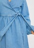 Give your wardrobe a contemporary update and do it in denim. Featuring a classic shape, this Blue Denim Wrap Dress features a light chambray material that sits above the knee. Secured with a self-tie waist, style it with white trainers and bright accessories. Crafted from 100% Cotton, this dress is machine washable for easy care. Whether youโre heading out for a casual day or a special occasion, this versatile piece ensures you step out in style while enjoying ultimate comfort.