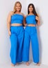 Learn moreEmbrace the summer blues with our new tailored wide leg trousers. These wide leg trousers are crafted from a soft, fluid fabric, making them ideal for creating a relaxed yet polished look. The high waist and wide legs create a flattering silhouette that flatters the body. Featuring side seam pockets that add a touch of practicality. Wear with the matching top for the cutest look perfect for all occasions and add a blazer and heels for a more formal look.