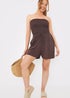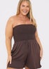 Learn moreLook effortlessly chic in our new In the Style brown shirred bust playsuit from our new collection with Lux Island. This gorgeous brown shirred bust playsuit is a must-have for your summer wardrobe. Featuring a flattering shirred bust, and no straps, it's designed for a comfortable and stylish fit. The lightweight fabric is perfect for warm weather, while the rich brown hue adds a touch of sophistication. Wear with sandals or trainers for a vibey look. We recommend that you size up from your usual size in this product.