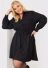 Learn moreThis dress will be your go-to this season. In a black corduroy material with a tie waist, pair with boots for a stylish look. Length: 93cm.