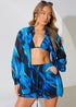 In The Style Perrie Sian Blue Abstract Print Co Ord Shirt