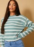 Wrap yourself in style with the In The Style Sage Stripe Jumper. This knitted crew neck jumper showcases a beautiful sage green hue with a crisp white, creating a chic tonal effect. Embrace comfort without sacrificing style by pairing it effortlessly with jeans or leggings for an adorable look.