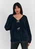 In The Style Stacey Solomon Black Fluffy Knit Embellished Bow Detail Cardigan