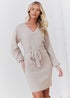 In The Style Stacey Solomon Oatmeal Pearl Button Detail Knit Belted Mini Dress
