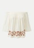 Take sweetness to a whole new level this season with this dashing top. Featuring a Bardot design for versatile wearing options and a dashing of oh la la, it's cut with classic ivory fabric and finished with sophisticated sleeves, alongside beautiful floral embroidery to the hem. For the ultimate summer look, simply team with shorts and sandals. Model Height: 5ft 9.