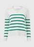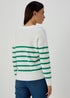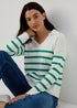 Add some color and flair to your wardrobe with this super cosy jumper. The bold green stripes on a soft ivory background, create a vibrant contrast that will catch everyone's attention. The open collar design gives you a relaxed and cozy fit, while the premium materials ensure durability and quality. Whether you want to dress it up or down, this jumper will suit any occasion and season.