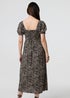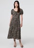 Izabel London Beige Animal Print Short Puff Sleeve Maxi Dress