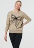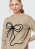 Izabel London Beige Bow Embellished Drop Shoulder Knit Jumper