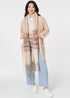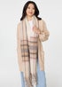 Izabel London Beige Checked Print Oversize Fringed Scarf