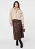 Izabel London Beige Collared Pocket Front Cropped Jacket
