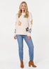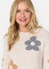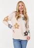 Izabel London Beige Floral Textured Knit Long Sleeve Jumper