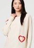 Izabel London Beige Heart Print Batwing Sleeve Jumper