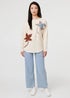 Izabel London Beige Leaf Print Batwing Sleeve Relaxed Top