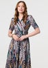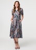 Izabel London Beige Printed Faux Wrap Front Jersey Midi Dress