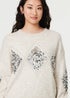 Bring warmth and shimmer to your wardrobe with this sparkly jumper. It has a beautiful sequin design on the front and on the sleeves, which also feature drop shoulders. It has a relaxed and comfortable fit, meaning it's perfect for festive parties and evening out.