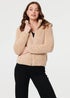 Izabel London Beige Soft Texture Zip Front High Neck Fleece