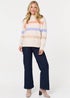 Add this striped jumper to your knitwear collection. It has a high neck, long sleeves and a boxy oversized fit. Thanks to a relaxed side split hem, it will layer beautifully over jeans, trousers or skirts. It's also made from a comfortable viscose blend fabric that will keep you warm on a chilly day.