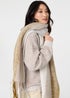 Izabel London Beige Striped Print Fringed Oversized Scarf