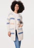 Izabel London Beige Striped V-Neck Longline Relaxed Cardigan