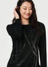 Add a sparkly touch to your outfit with this glamorous top. It has long sleeves, a round neck and a hip length hem. Wear it with plain black trousers for an autumnal evening out.