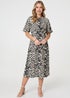 For an effortless look at work or a smart dress-code occasion, this dress is perfect. It's made from 100% viscose and has comfortable flared short sleeves. Flatter your figure with a shirred detail underneath the bust and a classic round neck, and pair the midi length hem with your favourite heels.