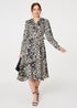 Izabel London Black Animal Print Ruffled Midi Wrap Dress