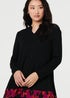 This smart blouse is made from a semi sheer material and has a relaxed, drapey shape. It also has long sleeves, a v-neck and a thigh length hem. Wear it over slim trousers or leggings for a smart look, or layer over blue jeans for a relaxed outfit.