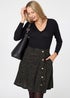 This flattering skater dress features a short skirt and a slim long sleeve top. It will look great on all figures thanks to a flattering v-neck, a flared shape and button details as an elegant finishing touch. It pairs perfectly with boots and tights.