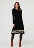 Izabel London Black Border Print Knee Length Knit Dress