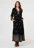 Izabel London Black Border Print Long Sleeve Maxi Dress